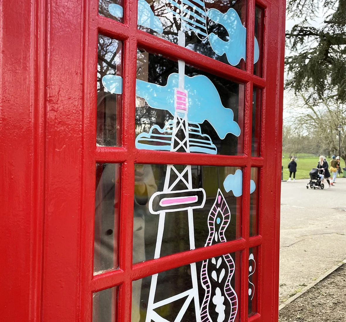 The iconic red British phone booth continues to be preserved in significant numbers, particularly in the city center, catering to tourists. In Crystal Palace Park, a singular phone booth stands out, offering artists a space to dream and express their aspirations.